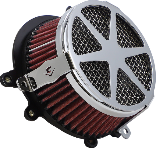 The Inverted Series Air Cleaner Kit features a bold black oiled cotton air filter with a striking silver contrast cut, crafted from CNC-machined fo...