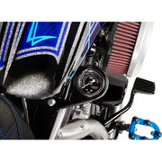 Upgrade your Big Twin or Sportster engine with our ARLEN NESS Oil Pressure Gauge Kit in Radius Black! Not only does it give a clean and stylish view of the gauge, but it's also CNC-machined from high-quality aluminum. Each kit includes a USA-made stainless steel hose assembly, a 60 lb. liquid-filled gauge, and necessary hardware. The bracket and cone assembly can fit most 1-1/2" diameter oil pressure gauges and can even be used without the cone for slightly larger gauges. Just be sure to check the clearance between the gauge and your gas tank for a risk-free ride!
