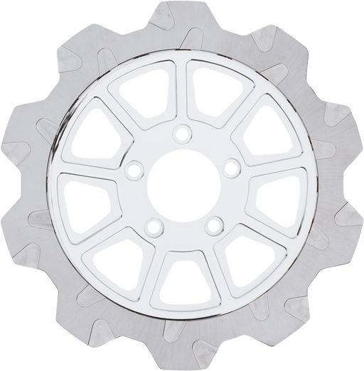 Features: Machine finish friction ring with a chrome center carrier Full floating performance rotor, bolt on replacement for Harley-Davidson Slott...
