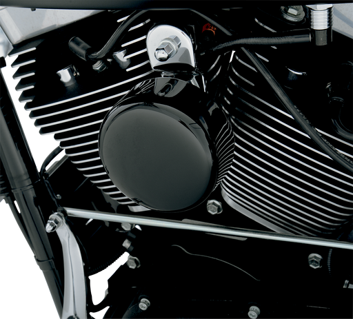Upgrade your ride with the DRAG SPECIALTIES Replacement Round Horn Cover in sleek black! This cover boldly replaces the traditional "cowbell" cover...