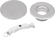 Take on the road with confidence! Get the Non-Vented Low Profile Gas Cap - Chrome for ultimate protection and style. Chromed low-profile gas caps feature screw-in paint protectors and ratchet-action cap. Non-vented cap has left-hand threads and is used only in the left side of double-capped tanks. Sold each; comes complete with installation tool for paint protector.