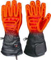Features full front-and-back heating that runs all the way to your fingertips for a premium warming experience, Lightweight, durable, stylish, and provide world-class heating performance, Premium leather outer shell , Gloves use patented Microwire heat technology and are made from lightweight, stretchable materials that help to improve dexterity and comfort during a wide range of activities, Finished with a water-resistant membrane, they repel water and keep your hands dry in adverse conditions, Small reinforcement layers are added to the fingertips for extra grip and added abrasion resistance; reflective piping, Index finger is equipped with a conductive material for ease of use with your smartphone or tablet, Aquatex* breathable water-resistant membrane and highloft insulation, Full-finger heating to the tips, Hand wash only and lay dry, 135? F Maximum Heating Temperature, Three-level on-board controller for easy temperature control: High, Medium and Low, Heat lasts up to 8 hours, Heating on both palm and back hand, Equipped with two 7-volt battery and a dual wall charger.