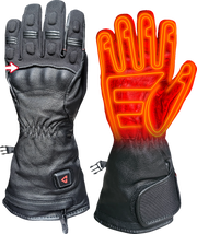 Features full front-and-back heating that runs all the way to your fingertips for a premium warming experience, Lightweight, durable, stylish, and provide world-class heating performance, Premium leather outer shell , Gloves use patented Microwire heat technology and are made from lightweight, stretchable materials that help to improve dexterity and comfort during a wide range of activities, Finished with a water-resistant membrane, they repel water and keep your hands dry in adverse conditions, Small reinforcement layers are added to the fingertips for extra grip and added abrasion resistance; reflective piping, Index finger is equipped with a conductive material for ease of use with your smartphone or tablet, Aquatex* breathable water-resistant membrane and highloft insulation, Full-finger heating to the tips, Hand wash only and lay dry, 135? F Maximum Heating Temperature, Three-level on-board controller for easy temperature control: High, Medium and Low, Heat lasts up to 8 hours, Heating on both palm and back hand, Equipped with two 7-volt battery and a dual wall charger.