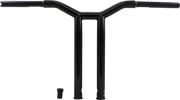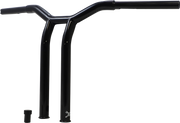 Handlebar - Dominator - Raked - 14" - Black Delivers a responsive handling position without sacrificing comfort or looks, The tube diameter is 1-1/4* stepped down to 1* for use with stock hand controls, Laser cut, welded, deburred, and slotted for easy internal wiring, The bars are crowned for electronic fly-by-wire throttle applications and polished to a show quality finish, Some bars require longer cables/lines/electrical for installation and will not fit models with integrated lower clamp