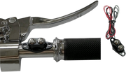 Dare to take control with the DRAG SPECIALTIES Duet Handlebar Switch Kit - Dual Button - Black. The custom CNC-cut billet aluminum housing adds a touch of boldness to any vintage or old-school style. Equipped with two stainless steel, all-weather 12V momentary mini switches, this kit is perfect for custom applications. Includes colored wiring and mounting hardware.