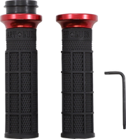 Billet aluminum Lock-On™ style clutch side clamp eliminates the need for grip glue or safety setscrews