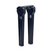 These geometrically shaped risers not only look like a stealth fighter but they offer the same aggressive agility and styling. This set up gets away from the traditional round 1-inch, 1.25-inch, or 1.5-inch riser posts we are used too. These risers have more material giving a larger footprint to the triple tree. With more materiel comes more structural integrity and less cross torsion flex. This product may sound heavy but no worries, these beautiful risers are CNC machined from billet aluminum, so they are very light and very strong. Beefy ARP style 12-point hardware crowns the machined one-piece top clamp. These Performance Risers are offered in 6”,8”, and 10” heights, in 1-inch and 1.25-inch clamp diameters, with pullback and straight options available. Two finishes are offered, Black Anodized or Raw Aluminum to compliment any build your customer has in mind.