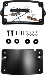 KODLIN USA introduces the luxurious and exclusive License Plate Kit - Amber/Red/White - BLACK. This motorcycle kit features a sleek, curved design and includes a very bright white LED light for optimal visibility. In addition, it includes a white LED tag light and red/amber LEDs for brake and turn functions, all encased in a low-profile aluminum frame. Mounting hardware is included for easy installation.