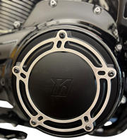 Intensify your riding experience with the KODLIN USA NXL Derby Cover. This sleek black cover not only adds a touch of style to your M8 Touring bike, but also delivers top-notch performance. Crafted from black anodized CNC machined billet aluminum, with a brushed stainless steel cover, this cover exudes strength and precision. Get ready to dominate the road with confidence and power!