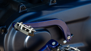 The KODLIN USA Shift Peg in black anodized with a brushed stainless steel cover is an ultra-light, premium shift peg crafted from CNC machined billet aluminum. It comes with all necessary hardware for easy installation and offers universal fitment. Pair it with matching floorboards, mini-boards, footpegs, point, and derby covers for a complete, bold look.