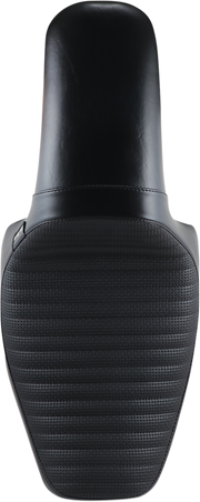 The Daytona Sport Seat in basketweave and pleated black for FXR '82-'00 features a molded one-piece foam foundation wrapped in premium black vinyl with a smooth, sleek design. Its low-profile shape provides excellent back support for maximum rider comfort. The carpeted seat bottom protects your fender, all mounted on a sturdy 16-gauge powder-coated steel base plate. Boldly crafted in the USA.