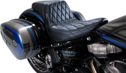 The Kickflip Seat in diamond black is built for Softail models from '18 to '23. It features a powder-coated steel base plate with carpeting to protect your bike’s paint. Equipped with LePera’s molded Marathon Foam, it delivers exceptional stability and comfort. Handcrafted with LePera’s signature precision, this seat is covered in premium black vinyl and made in the USA.