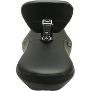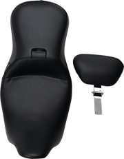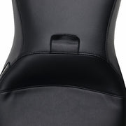 The Outcast 2-Up Seat with Backrest in smooth black is crafted for Touring models from '08 to '23. Featuring a molded one-piece foam foundation wrapped in premium black vinyl atop a durable 16-gauge powder-coated steel base, this full-length seat is built for solo riders who prefer extra comfort and support. Its carpeted bottom safeguards your fender while delivering a sleek, bold look. Made in the USA for riders who demand both style and performance.