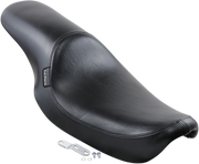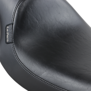 The Silhouette Full-Length Seat in smooth black for Dyna '91-'95 features Le Pera’s sculpted, one-piece molded foam core wrapped in premium vinyl. Its powder-coated steel baseplate is carpeted to protect your bike’s finish. Designed with a low, sleek profile, it provides solid back support. Made in the USA.