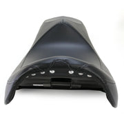 The Villain Seat in smooth black is designed for Touring models from '08 to '23. It features a molded one-piece foam foundation wrapped in premium black vinyl, mounted on a durable 16-gauge powder-coated steel base. The carpeted seat bottom safeguards your fender, combining rugged durability with sleek style. Proudly made in the U.S.A.