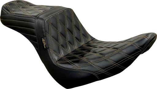 The Kickflip Seat in black with diamond pattern and chestnut stitching for Softail '18-'23 combines LePera’s molded Marathon Foam for superior stab...