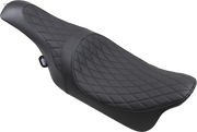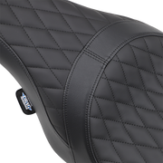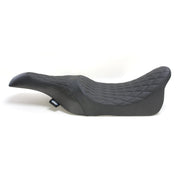 Embark on an adventurous journey with the Caballero Diamond Stitch Solar Reflective Leather Seat - Black - FL '08-'23. Crafted using automotive grade vinyl on the sides and either solar reflective leather or faux suede in the seating area, this seat boasts molded polyurethane foam for maximum comfort and style. It comes with all necessary mounting hardware and instructions, and is proudly made in the U.S.A. With a 3/16" ABS thermoformed seat base for a perfect fit, and a carpeted bottom and rubber bumpers to protect your paint, this seat is designed to push the limits and take risks. Please note, the rear seating portion is not recommended for passengers, but is perfect for adding a touch of style to your ride. For '99-'07 FLT/FLHT/FLTR models, '99-'07 FLHR/FLHX seats can be used with a lower dash extension Part #2202-0070.