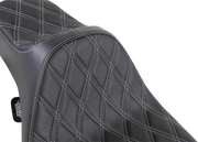 DRAG SPECIALTIES Extended Reach Predator III Seat - Double Diamond - Silver Stitching - Touring '99-'07