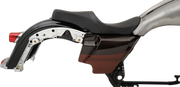 Experience the thrill of the ride with the DRAG SPECIALTIES Low Profile Touring Mild Stitched Seat - w/ Yaffe 6 gallon custom fuel tank - FL '18-'23. Featuring solar-reflective leather and automotive-grade vinyl for superior cooling and longevity, this seat also boasts a 3/16* ABS thermoformed base for a precise fit. Plus, its molded foam interior provides ultimate comfort and style. Don't miss out on this essential addition to your bike, made in the U.S.A. and complete with mounting hardware! For a bike equipped with a Yaffe 6 gallon custom fuel tank.