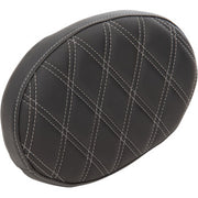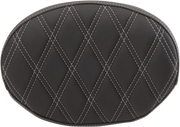 Oval Sissy Bar Double Diamond Silver Stitch Pad - Black - FL '99-'22. This pad boasts high-quality automotive-grade vinyl and is designed to perfectly complement Drag Specialties Seats. Plus, it's versatile enough to replace sissy bar pads of all sizes and measures a challenging 7-1/2" tall x 10" wide. Made in the U.S.A. for adventurers like you! Not for Air Wing Sissy Bar. Fits short, medium, and tall HD detachable sissy bars but the short bar and pad may not work with the OEM tall passenger rear seats.