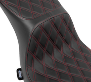 DRAG SPECIALTIES Predator 2-Up Seat - Vinyl - Double Diamond - Red Stitching - Softail '18-'24