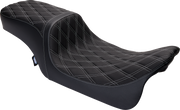 DRAG SPECIALTIES Predator Double Diamond Silver Stitch Vinyl w/o Backrest 2-Up Seat - Black - Touring '08-'23