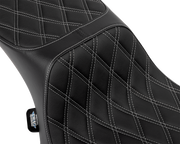 DRAG SPECIALTIES Predator III 2-Up Seat - Extended Reach - Vinyl - Silver Double Diamond Stitch - Touring '23.5-'24