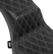 DRAG SPECIALTIES Predator III 2-Up Seat - Vinyl - Double Diamond - Silver Thread - Softail '00-'17