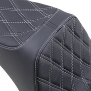 DRAG SPECIALTIES Predator III Double Diamond Silver Stitch Vinyl Seat - Black - Softail '06-'17
