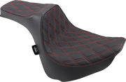 DRAG SPECIALTIES Predator III Double Diamond Red Stitch Vinyl Seat - Black - Softail '18-'23