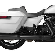 The seat is engineered with molded polyurethane foam that provides exceptional comfort and support for long rides. Its innovative design includes a narrow front for improved leg clearance, allowing for better maneuverability on the road. Additionally, the 3/16" ABS thermoformed seat base guarantees a perfect fit, and the carpeted bottom with rubber bumpers protects your bike's paint job. Installation is a breeze as it comes with all necessary mounting hardware and is compatible with all Drag and most Harley-Davidson sissy bars. Made in the USA, this seat combines quality craftsmanship with modern aesthetics to redefine your riding experience.