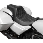Upgrade your ride with the DRAG SPECIALTIES Predator III Seat, tailored for FLT/FLH models from 2023 to 2024. Featuring a bold double diamond design accented by silver stitching, this seat commands attention while delivering lasting durability with its automotive-grade vinyl construction. Perfect for riders who want to combine fierce style with unbeatable comfort on every journey.