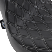 DRAG SPECIALTIES Predator III Double Diamond Silver Stitch Vinyl Seat - Black - Softail '18-'23