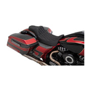 Get ready for an exhilarating ride with the Predator III Extended Reach Double Diamond Black Stitch Vinyl Seat for FL '08-'23. This seat is made for risk-takers, with a design that moves the rider back 1-1/2" for extra thrills. Crafted with high-quality automotive-grade vinyl cover and molded polyurethane foam, this seat offers maximum comfort and style. The 3/16" ABS thermoformed seat base provides a perfect fit, while the carpeted bottom and rubber bumpers protect your paint. With a narrow front end for better leg clearance, this seat is ready to take on any adventure. All mounting hardware is included and it fits with all Drag and most H-D sissy bars. Made in the USA, this seat is a challenge you don't want to miss out on!