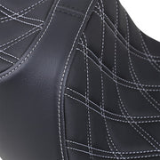 DRAG SPECIALTIES Predator III Extended Reach Double Diamond Silver Stitch Vinyl Seat - Black - Touring '08-'23