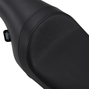 Experience ultimate comfort and style with the DRAG SPECIALTIES Predator Smooth Vinyl - Black - FL '08-'23. Made with custom-molded polyurethane foam interior for maximum support and featuring a 3/16" ABS thermoformed seat base for a flawless fit. The fully carpeted bottom not only adds a sleek look but also protects your paint. This seat fits perfectly on all Drag and most H-D sissy bars and is 1" lower than stock (unless noted). Get ready to take on new adventures with all the necessary mounting hardware included. Made in the USA, this seat is ready to take you on a thrilling ride!