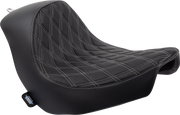 DRAG SPECIALTIES Solo Double Diamond Silver Stitch Vinyl Seat - Black - Softail '18-'23