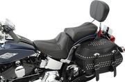 The Dominator Pillion Pad Standard Reach in Black with Silver Stitching for Softail '06-'17 installs effortlessly in seconds without tools and adjusts both horizontally and vertically to fit the rider’s back perfectly. Its removable design keeps your bike looking sleek. Featuring Gel and the advanced GC-design, this pad offers a fuller shape than typical pillion pads, delivering exceptional comfort for extended rides. Proudly made in the USA, it’s built to push your comfort limits.