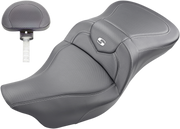 Refined split-cushion design separates the seating surface from the lumbar support to reduce tailbone/back pressure for maximum long-range comfort, Seat features a combination of progressive density foam and SaddleGel inserts for superior driver and passenger comfort, Pillowed soft upholstery cover backed by a compliant foam layer under the cover to provide incredible comfort and style, Moves driver 2* further back from stock and standard RoadSofa* seating position, Tall lumbar support and wide driver saddle supports the back and legs for superior comfort, while the streamlined nose improves the rider's reach to the ground, Classic styled button-tufted cover, Made in the USA