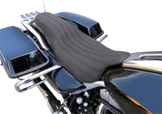 Deep, aggressive ribs are carefully stitched into the brushed SaddleHyde* weather resistant cover while hand-crafted progressive density foam and SaddleGEL* foundations serve up comfort not normally present in a low profile seat, Strong fiberglass pans with plated hardware ensure a perfect fit for a trouble-free install, Designed and made in the USA. Not for '14-'21 Harley models with OEM Tour Paks®.