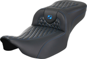 SADDLEMEN Roadsofa™ Extended Reach Seat - without Backrest - Honeycomb - Blue Stitch - Touring '23.5-'25