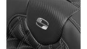 The Roadsofa™ Extended Reach Seat positions the rider 1.5" further back than the standard Roadsofa, offering a more aggressive riding stance. Featuring SaddleGel cushioning at both front and rear, it alleviates tailbone pressure and boosts circulation for rider and passenger alike. Its tall lumbar support and wide saddle cradle your back and legs for exceptional comfort, while the tapered front enhances your reach to the ground. The split-cushion design separates the seating area from lumbar support, reducing pressure for long-distance rides. Upholstered in ventilated, soft Saddlehyde leather with gray lattice stitching, it combines luxury with durability. Includes a fitted rain cover to protect against water and dirt. Made in the USA.