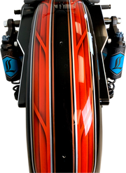 Performance comes from the inside out: 35 mm monotube construction, deflective disc valve stacks, and a balanced/matched piston and base-valve design specific to motorcycle applications. A nitrogen gas bladder provides ultra-fast response and stiction-free movement, while low-friction sealing and sliding bearings enhance feel and consistency. Spherical bearings at both mounting points ensure easy installation and perfect alignment.