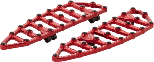 Defy the ordinary with ARLEN NESS MX Billet Driver Floorboards - Red. These floorboards boast a bold, detailed cut through design with rubber inser...