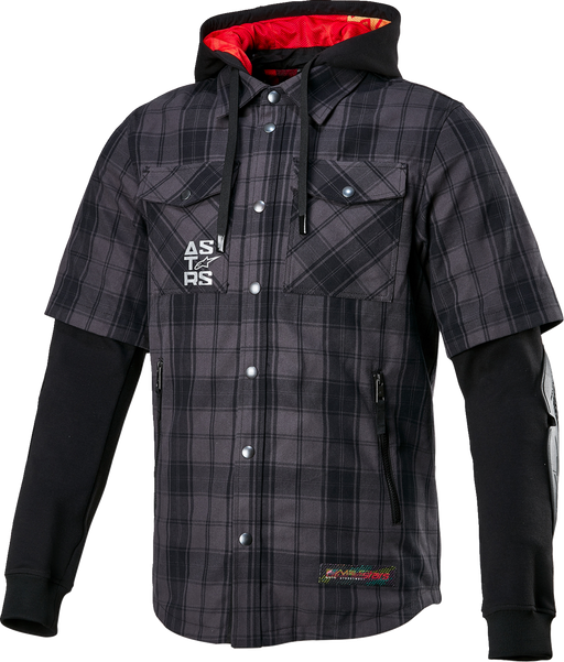 Introducing the ALPINESTARS MO.ST.EQ Tartan Jacket, a versatile and stylish riding garment that blends the functionality of a half shirt and a hood...