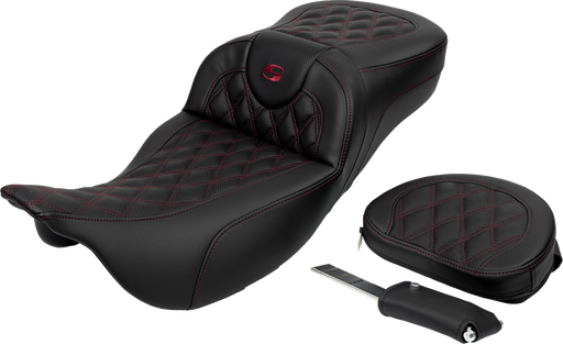 SADDLEMEN Roadsofa™ Extended Reach Seat - Lattice Stitch - Red Stitch - with Backrest - Touring '08-'24