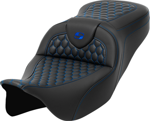 SADDLEMEN RoadSofa™ Seat - Honeycomb - Blue Stitch - without Backrest - Touring '08-'24