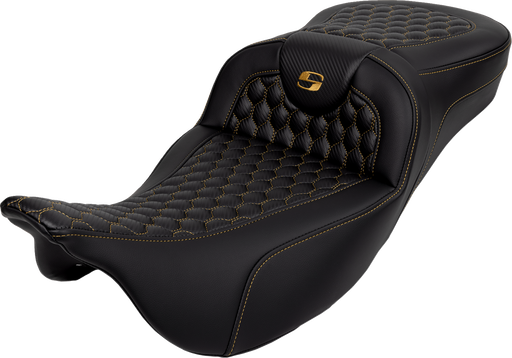 View full detailsSADDLEMEN Roadsofa™ Seat - Lattice Stitch - Gold Stitch - w/ Backrest - Touring '08-'24