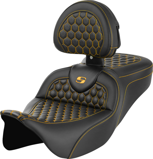 View full detailsSADDLEMEN RoadSofa™ Seat - Honeycomb - Orange Stitch - with Backrest - Touring '08-'24