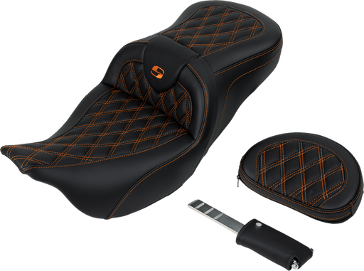 SADDLEMEN Roadsofa™ Seat - with Backrest - Orange Stitch - Touring '08-'24